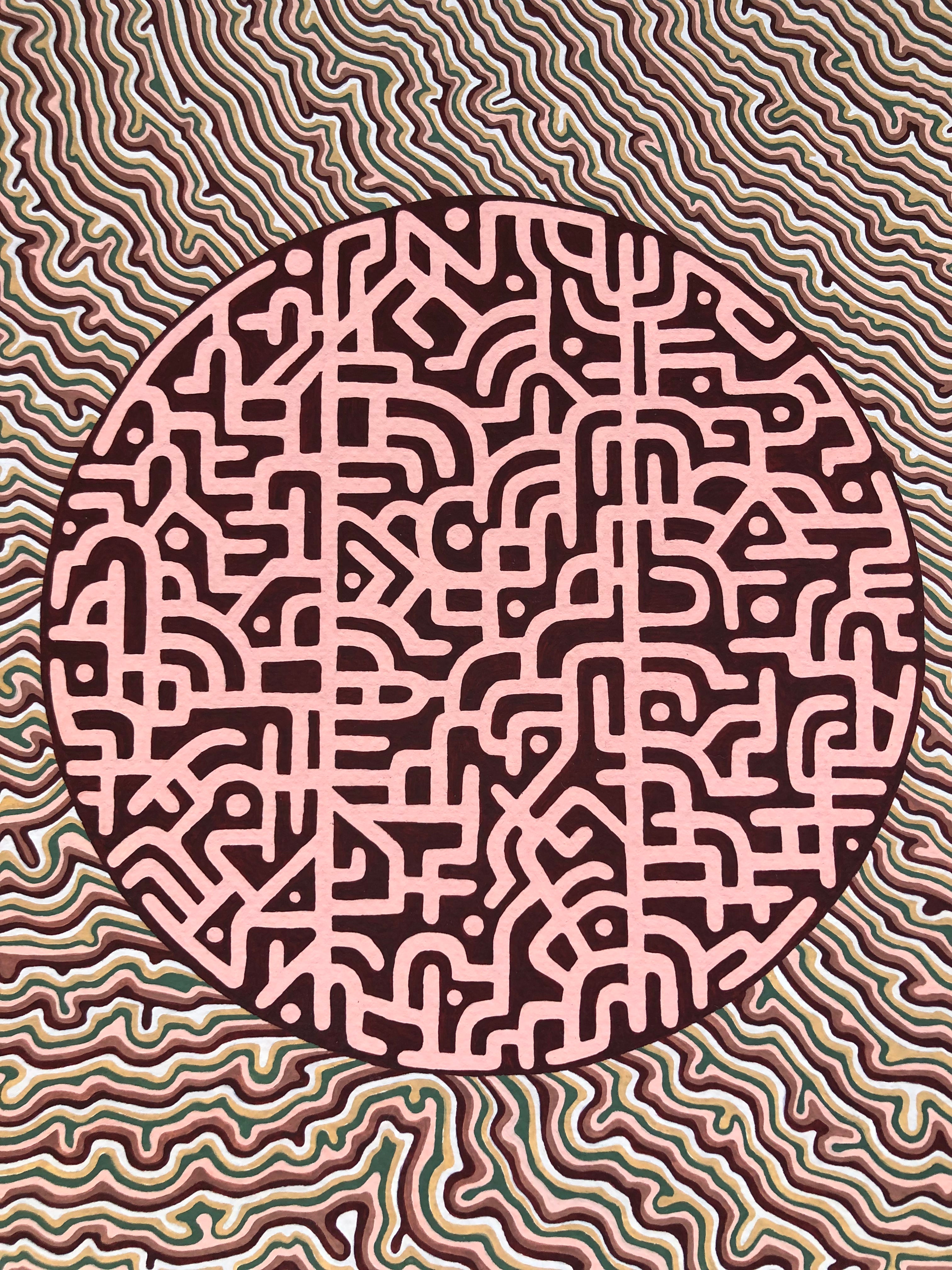 Each one is drawn free-hand, built from tiny, abstract shapes that lock together like a whimsical puzzle. Once the drawing comes to life, I paint it with gouache, experimenting with colour combinations to create vibrant, one-of-a-kind patterns.